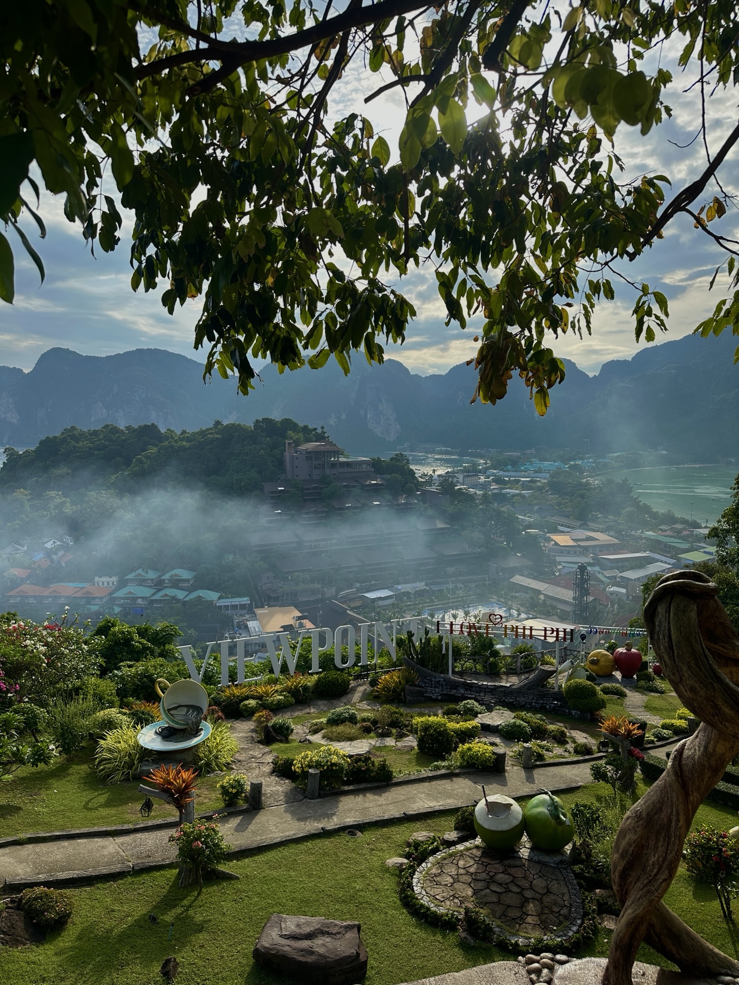 Vom Tonsai Village aus kannst du ca. 25min hoch zu den Viewpoints laufen. Viewpoint 1 kostet ca. 30 Baht Eintritt. Die Aussicht von hier ist nicht überwältigend, allerdings findest du hier das bekannte I ❤️ Phi Phi Fotomotiv und einen wunderschönen Garten. Von dort aus kannst du in 15-20min direkt weiter zum Viewpoint 2 laufen. Dieser kostet keinen erneuten Eintritt. Vom Viewpoint 2 hast du die schönste Aussicht über Koh Phi Phi. Hier findest du auch ein kleines Restaurant und Café.
